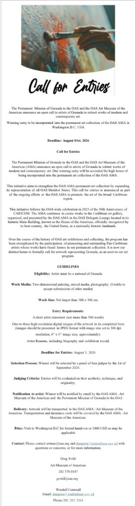 The Grenada Arts Council (GAC) is a non-government volunteer body established in 1964 to promote creative potential in our Grenadian environment; encourage a national appreciation for visual art and the need for institutional support and permanent physical structures to exhibit art and to ensure that Grenada benefits culturally, socially, and economically from a truly sustainable resource – its artists.