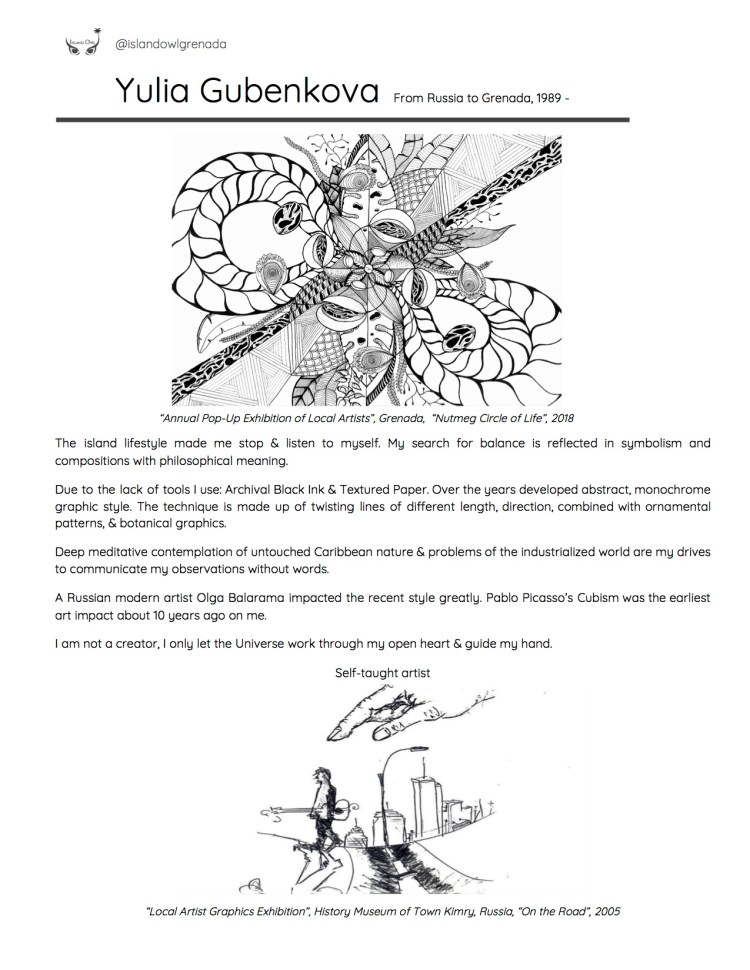 Posted byashermainsPosted inArtist ProfilesTags:art, artgrenada, artist, drawing, grenada, grenadaartisland, ink, inspiration, Juliagubenkova, linework, meditation, russia
