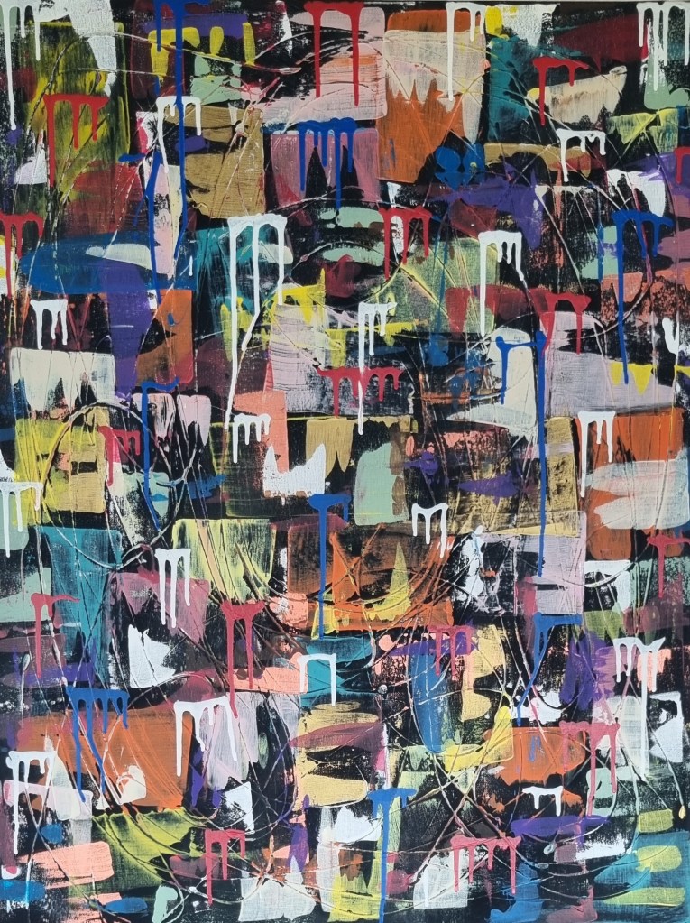 1) 36” x 48” poured acrylic on canvas