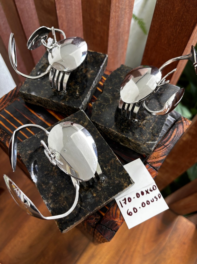 A flintlock pistol used by pirates, based on history, will be presented, along with a snapper and a seahorse representing marine diversity and its species. All are created from cutlery, spoons, forks, and kitchen utensils, which were modified to achieve these beautiful works of art, products of my imagination and creativity.